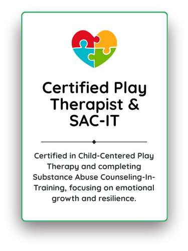 I’m a certified play therapist with advanced training in Child-Parent Relationship Therapy (CPRT). I founded Giggles & Growth to provide children and families with a compassionate, evidence-based space to grow, heal, and thrive. My approach centers on meeting children exactly where they are — through the language they know best: play.